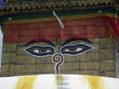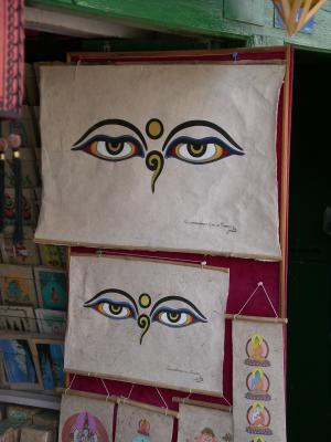 Zusaetzlich wollten wir natuerlich die Buddnath Stupah besuchen. Allueberall in den Gassen von Kathmandu verkaufen sie alle moeglichen Souvenire mit den beruehmten Buddha Augen.