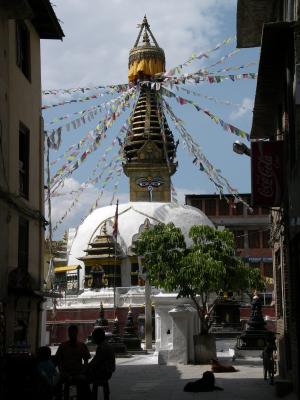 Rund um die Stupah gibt es Dachrestaurants, von welchen man einen herrlichen Blick auf die Stupah und auf die umliegenden Bergketten haette, uns musste der schoene Blick auf die Stupah reichen, aber dieser ist schon wunderbar.