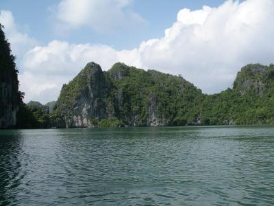 Waehrend der drei Tage auf dem Schiff wurden wir kulinarisch vom Feinsten verwoehnt. Es gab bei jedem Essen etliche Platten verschiedener Meeresfruechte und Fische, aber auch fuer Katja gab es viele feine Sachen. Am ersten Tag schauten wir uns eine riesige Hoehle an und wurden durch die herrliche Landschaft gefahren und konnten dabei einfach etwas ausspannen. Von dem riesigen Bootsgewimmel beim Boarden des Bootes in Halong, konnten wir uns rasch entfernen.