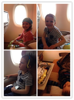 Beide strahlen über beide Ohren, ihr erster Flug! Dann Filme schauen bis die Ohren wackeln, und dafür das Frühstück verpassen😂